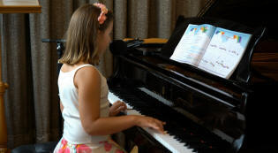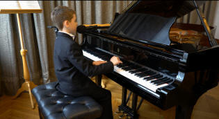 uczy się grać na fortepianie